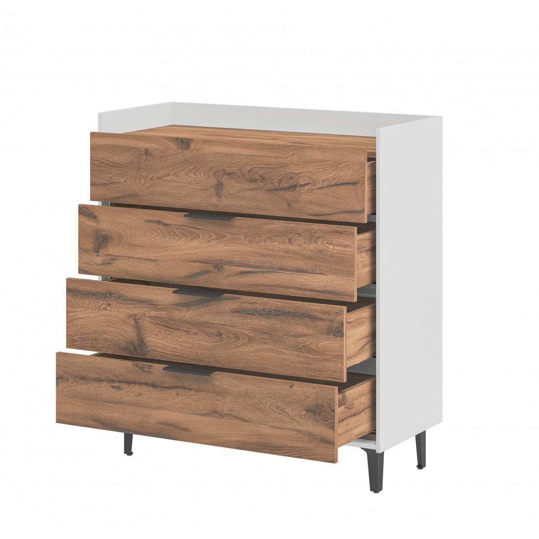 Элегантная комод Модена станет идеальным дополнением для вашей гостиной. Выберите из трех стильных вариантов цветов: Белый-Дуб Элисон, Лунный камень-жемчуг, Металл Бруклин-лунный жемчуг. Ножки из металла обеспечивают устойчивость.