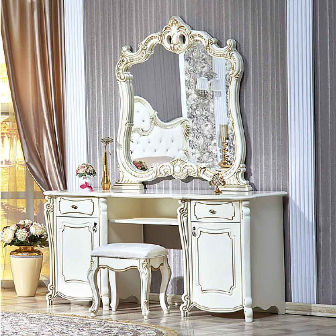 Туалетный столик с зеркалом Лорена (крем)